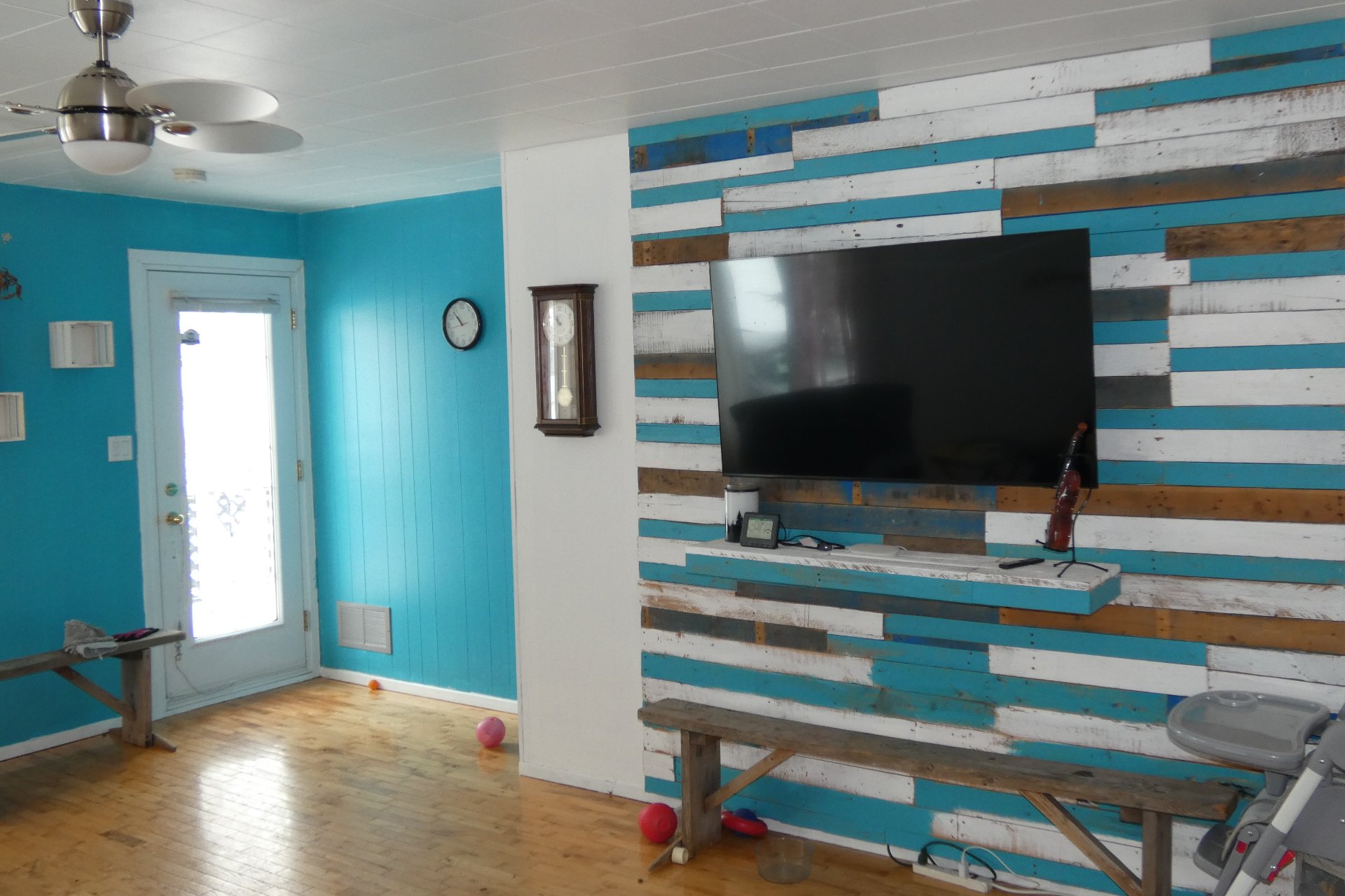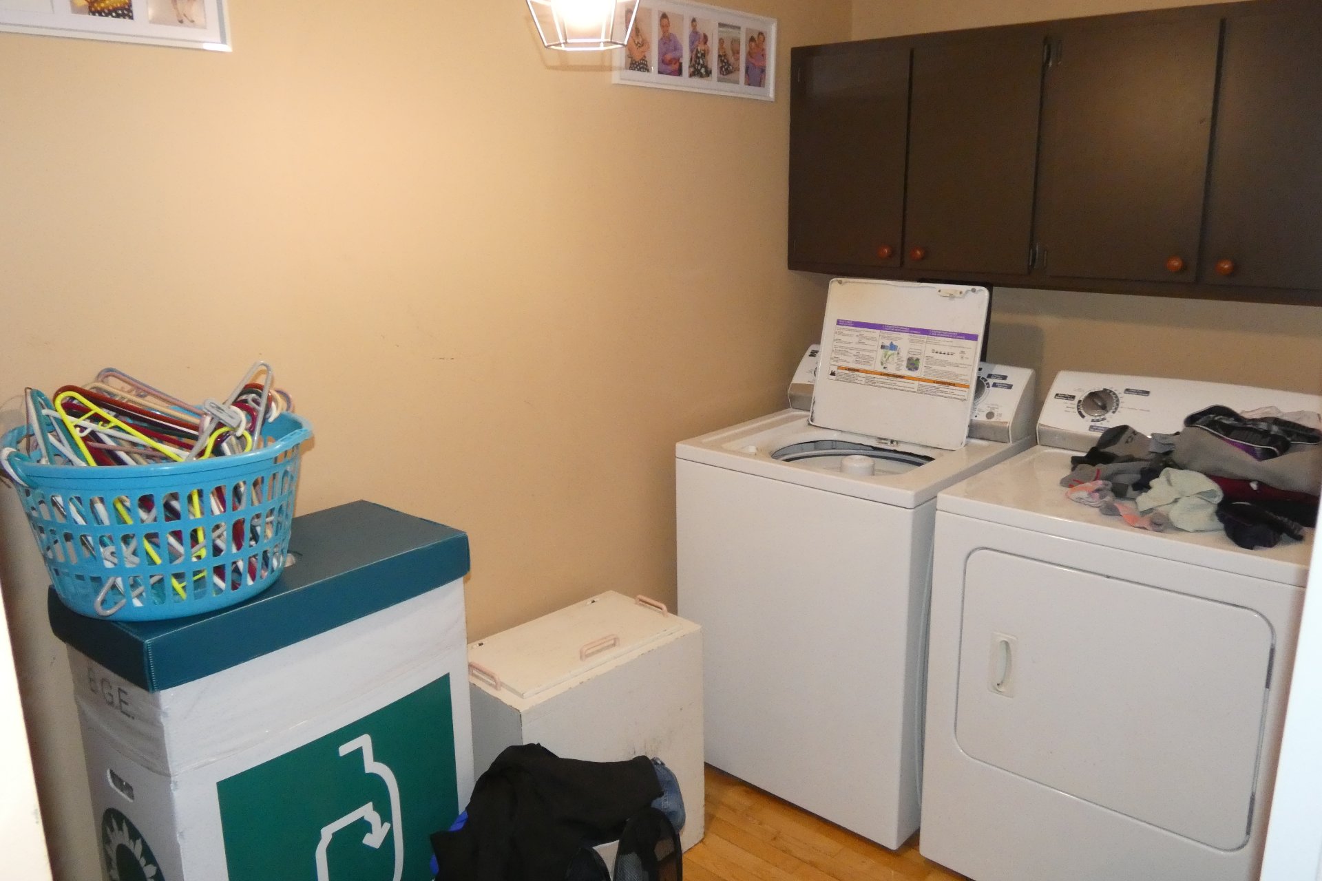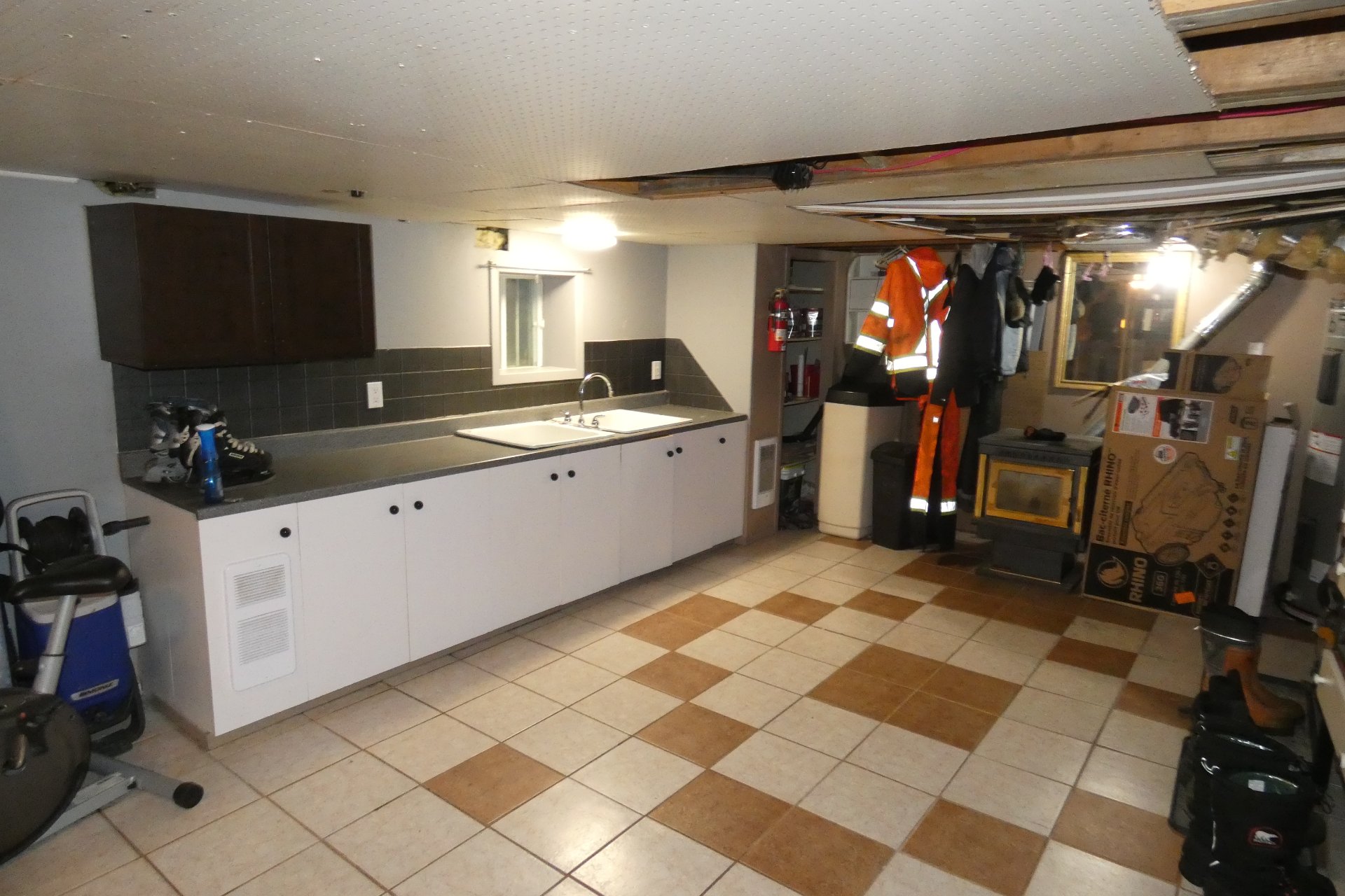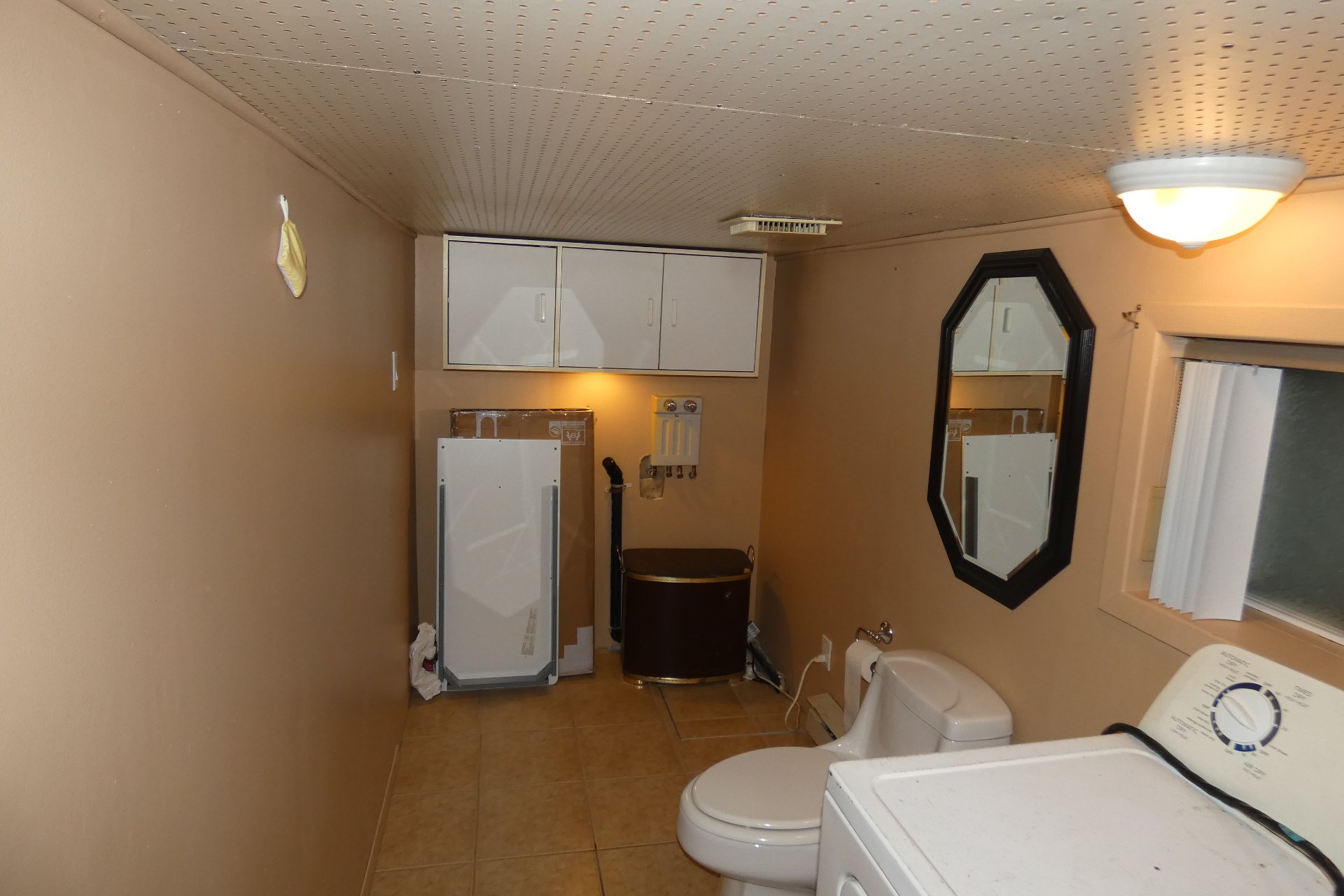 Lave-vaisselle, poêle aux granules, adoucisseur d'eau, bac bleu, bac vert, ventilateurs, luminaires, fixtures, stores de salle de bain.